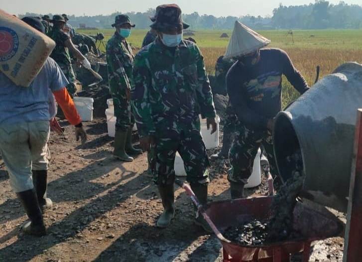 Pati – Kegiatan pembangunan jalan betonisasi sebagai sasaran pokok pada program TMMD reguler ke 111 saat ini terus dipacu pelaksanannya.