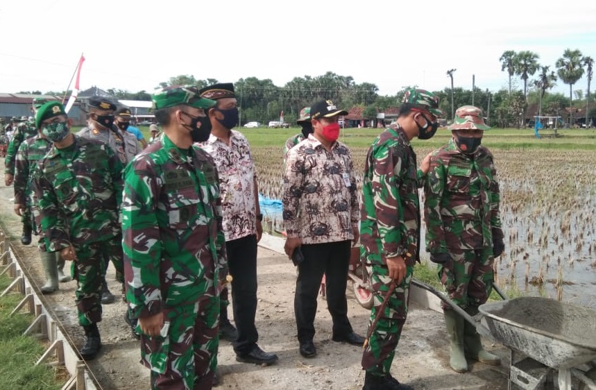 Pati-Kunjungan Komandan Korem 073/Makutarama Kolonel Arm Putranto Gatot Srihandoyo dilokasi betonisasi jalan di desa Tamansari