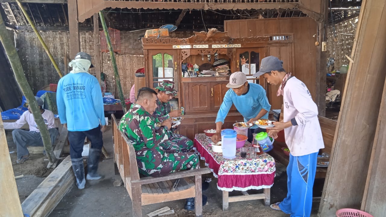 Pati –Ayo ayo Lautan Dhisik ajakan tuan rumah kepada para pekerja yang artinya ajakan untuk berhenti bekerja sementara waktu atau istirahat dan untuk melaksanakan makan siang dan melakukan ibadah. Program Tentara Manunggal Membangun Desa(TMMD) Ke 111 Ta 2021 Kodim 0718/Pati tidak akan mendapat hasil yang baik tidak di dukung logistic yang cukup seperti halnya dalam bahasa militer Logistik Tidak Menentukan Kemenangan Dalam Suatu Pertempuran Tapi Tanpa Logistik Mustahil Kemenangan Dapat Diraih. Tentunya penyediaan logistic ini jugatergantung dari kemampuan warga dan tidak membebani ekonomi tuan rumah maupun warga ,Kamis(10/06/2021).