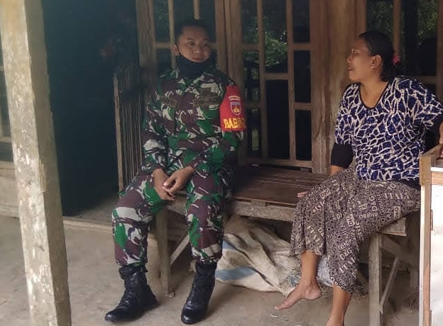 Di sela-sela tugasnya sebagai anggota Satgas Kopral M. Arifin menyempatkan diri untuk jalin komunikasi di lokasi TMMD dengan Sudarmi (52) warga Dukuh Pandahan RT.02/03 Desa Tamansari, Kecamatan Jaken, Kabupaten Pati, untuk saling berbagi cerita pengalaman suka dan dukanya selama menjadi buruh tani di desanya, Sabtu (19/6/2021).