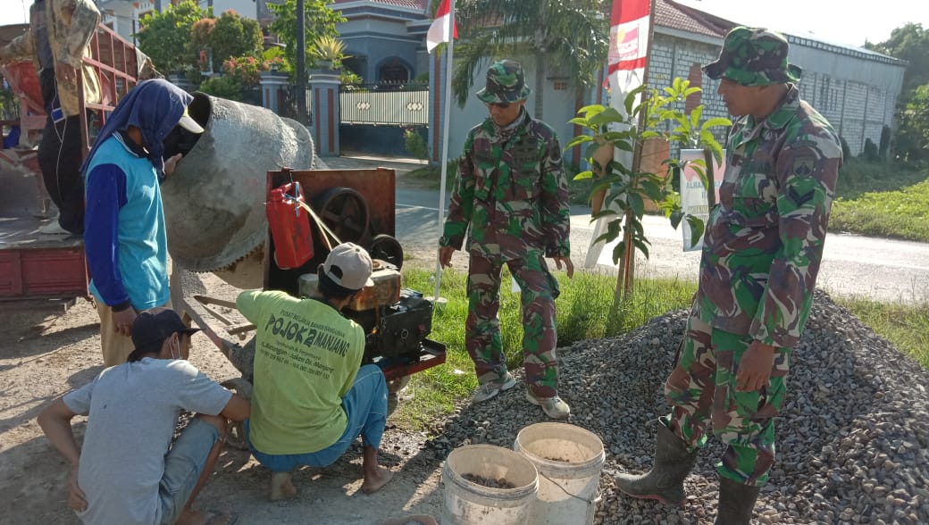 Pati – Program TNI Manunggal Membangun Desa (TMMD) Reguler Ke-111 Kodim 0718/Pati masih melanjutkan pengerjaan rabat beton jalan di Desa Tamansari, Kecamatan Jaken, Kabupaten Pati. Dalam pengerjaan rabat beton jalan ini, keberadaan mesin molen (pengaduk material) di lokasi TMMD merupakan alat utama untuk mempermudah dan mempercepat adonan cor.