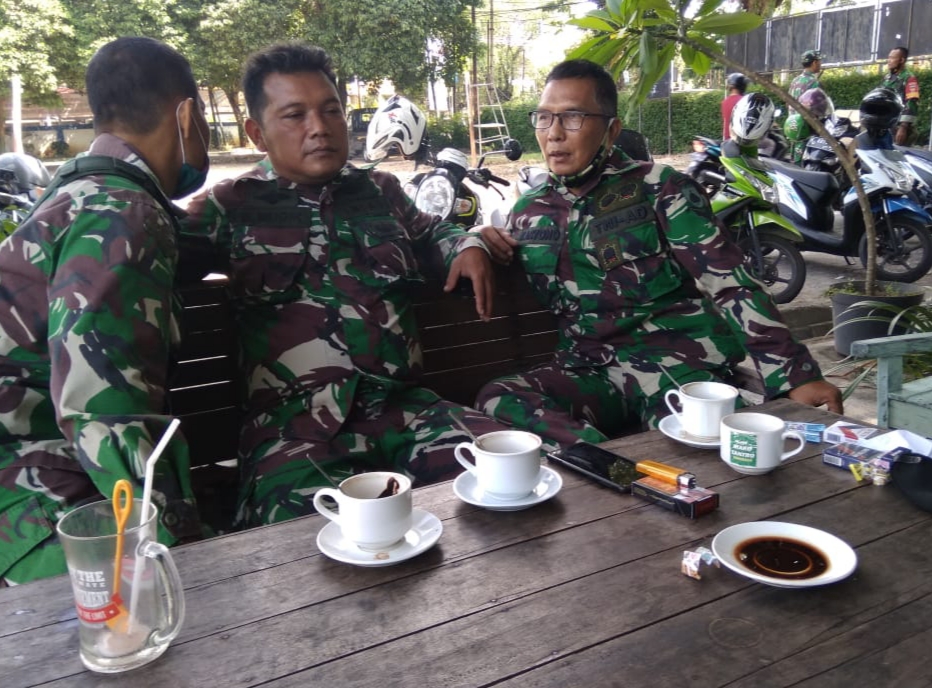 Pati – Ngopi bersama warga setempat merupakan bagian dari aktivitas pagi anggota satgas TMMD Reguler ke-111 Kodim Pati yang dilaksanakan di Desa Tamansari, Kecamatan Jaken, Kabupaten Pati, Jawa tengah. Rutinitas ini lakukan hampir setiap pagi sebelum melaksanakan aktifitas pekerjaan dilokasi sasaran fisik TMMD, Senin (07/6/2021).
