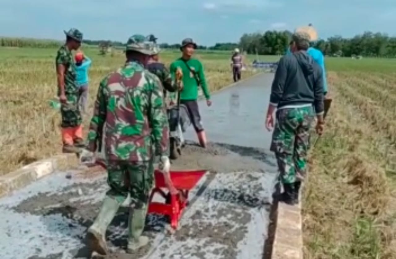 Para Babinsa Kodim Pati Terjun Di Lokasi Betonisasi Jalan