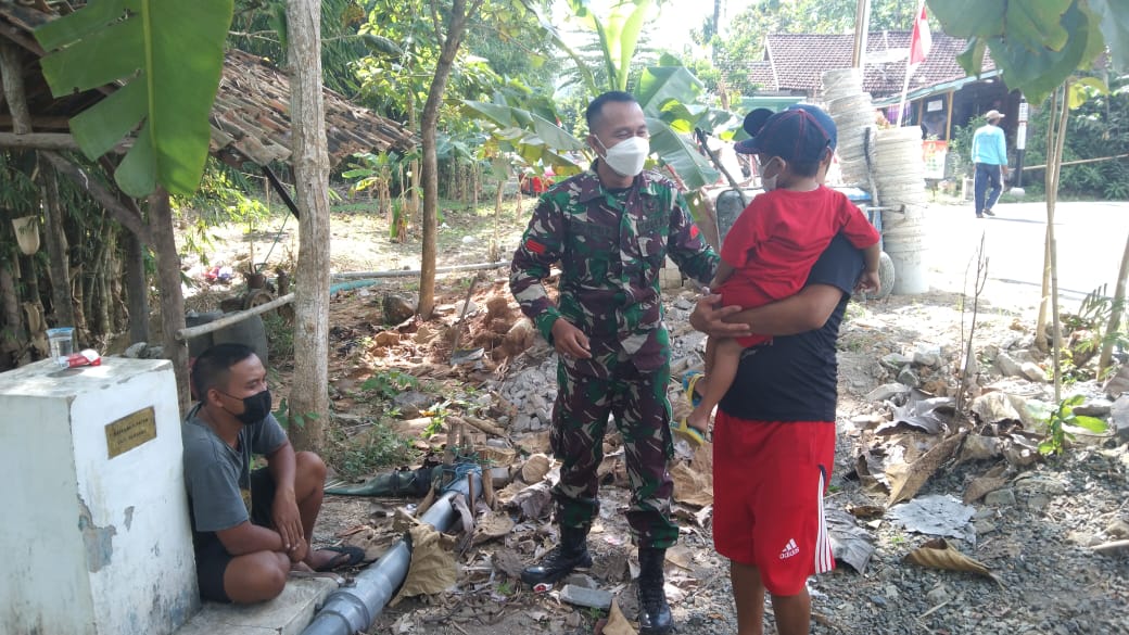Pati – Pelaksanaan TMMD Reguler ke-111 Kodim 0718/ Pati di Desa Tamansari,Kecamatan Jaken, Kabupaten Pati sudah berakhir, Namun Parka Santoso Anggota Koramil/ 16 Jaken tetap terus meningkatkan komunikasi sosial (komsos) antara TNI dengan warga masyarakat agar hubungan dapat terjalin dengan baik. Minggu (18/07/21).