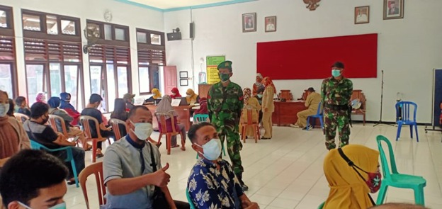 Pastikan Pelaksanaan Vaksin C-19 Aman, Anggota Satgas TMMD Ke-111 Kodim 0718/Pati Himbau Patuhi Protokol Kesehatan