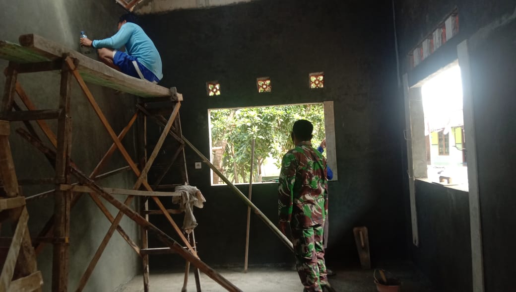 “Selain pengerjaan pengacian dinding bagian dalam rumah nanti akan langsung dilanjutkan dengan pengecatan dasaran agar hasil pengecatan nantinya bisa lebih maksimal rumah milik bapak mudadi,” ucap Kopda Bowo Sulistyo.