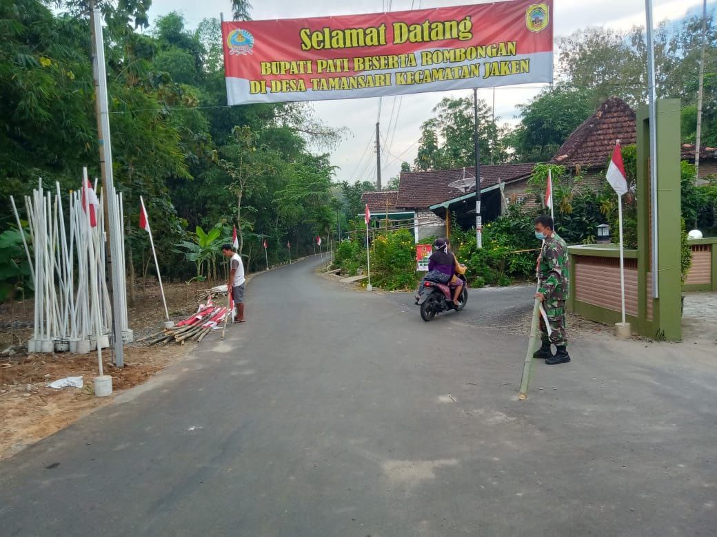 Untuk mempersiapkan upacara pembukaan tersebut, yang rencananya akan di buka oleh Bupati Pati Haryanto, anggota Satgas TMMD dan anggota Kodim 0718/Pati mulai memasang bendera, banner, umbul-umbul, di lokasi lapangan upacara di Desa Tamansari, Kecamatan Jaken, Kabupaten Pati.