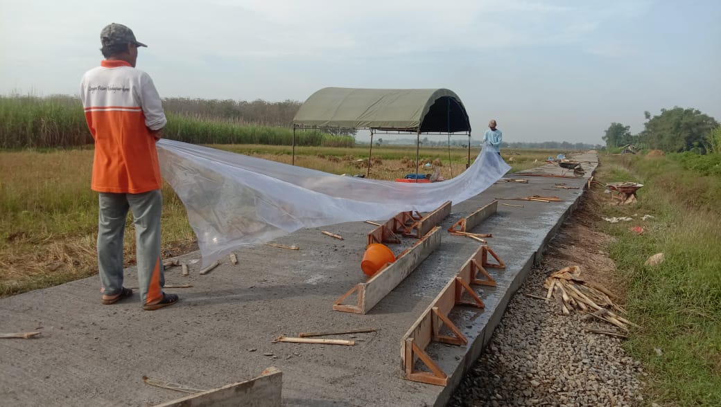 Pembukaan plastik terpal penutup jalan, agar nanti plastik terpal tersebut bisa digunakan kembali di lokasi jalan yang yang baru saja akan dilakukan pengecoran. Menutup jalan yang baru saja dilakukan pengecoran bertujuan untuk membuat jalan lebih cepat kering dan menghindarkan jalan dari guyuran air hujan.