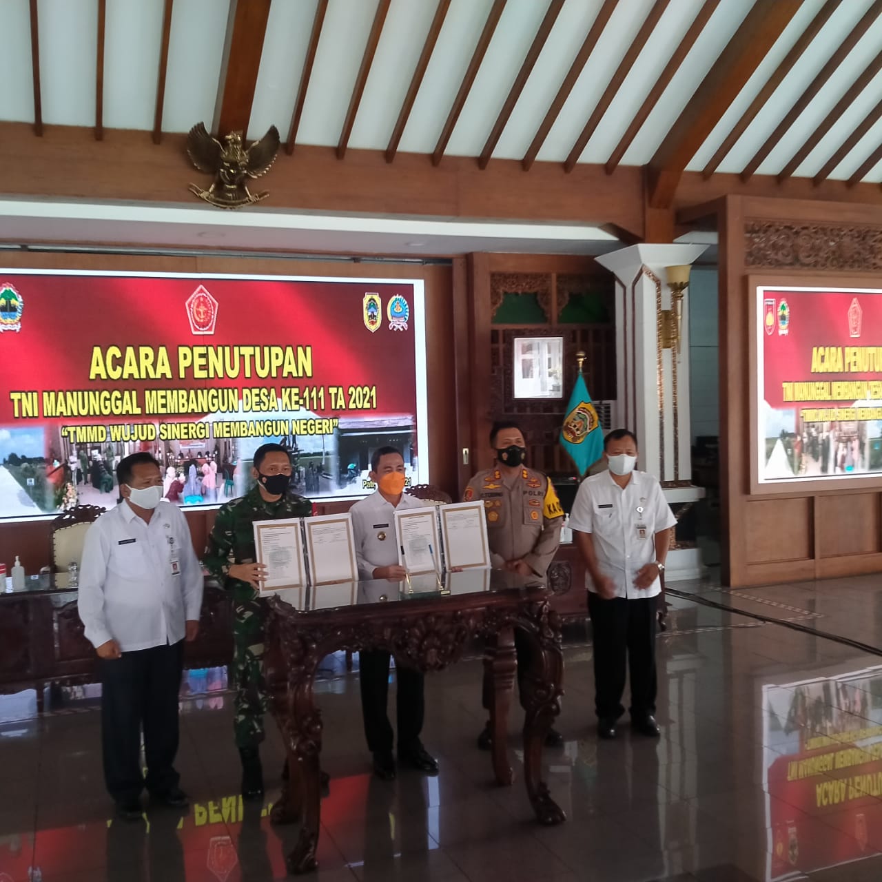 Penutupan Giat TMMD Kodim 0718/Pati Ditandai Dengan Penanda Tanganan Naskah Serah Terima Dari Hasil Pembangunan
