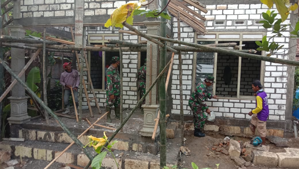 Pati – Kegiatan TNI Manunggal Membangun Desa (TMMD) ke-111 Kodim 0718/Pati TA.2021 di Desa Tamansari, Kecamatan Jaken, Kabupaten Pati. Kegiatan Program TMMD Rumah Tidak Layak Huni (RTLH) di Desa Tamansari merupakan momen yang tepat bagi Sertu Jumroni selaku anggota Koramil 16/Jaken dan juga Babinsa Tamansari, untuk ikut andil dalam mempercepat pembangunan di desa binaannya.
