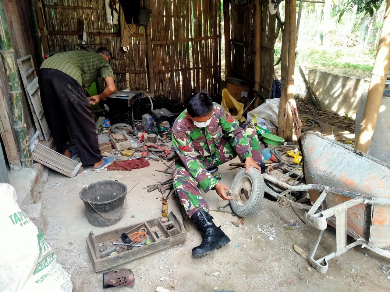 Pada awalnya beberapa angkong yang rusak berat sering dibawanya kebengkel milik Sutris (52) warga Desa Tamansari, seiring berjalannya TMMD keakraban diantara mereka pun terjalin sehingga Koptu Irwan belajar mereparasi angkong dibengkel tersebut.