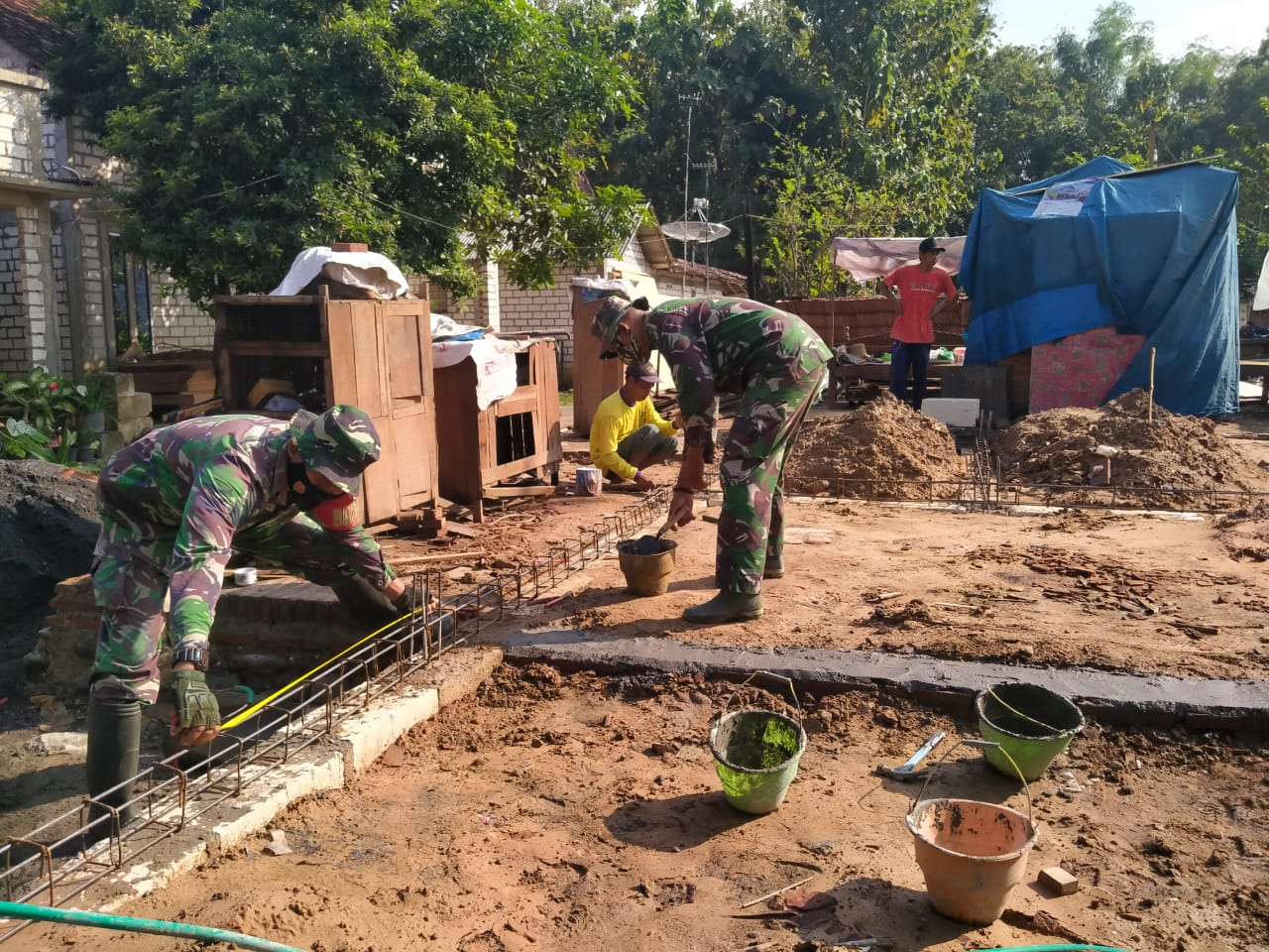 Terlihat Juga anggota TNI dan warga yang tergabung dalam bedah rumah Sapari lainnya yang sedang sibuk dengan kegiatan masing-masing, ada yang masih merangkai besi, merapikan pondasi, dan pengurugan tanah kedalam ruang bangunan.