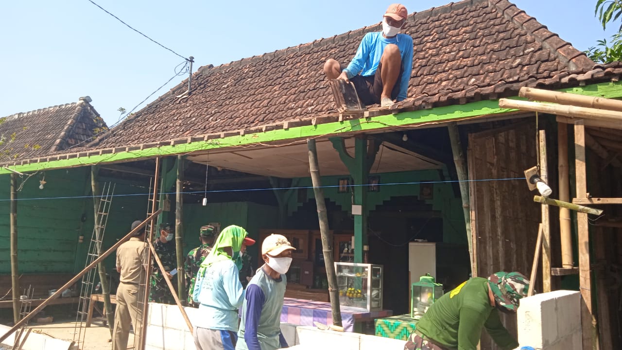 Pati-Rehab rumah Tidak Layak Huni (RTLH) dalam program TMMD Reguler 111 Kodim Pati sebanyak 16 unit secara silih berganti dikerjakan oleh satgas TMMD bersama masyarakat.Selasa,(22/06/2021).