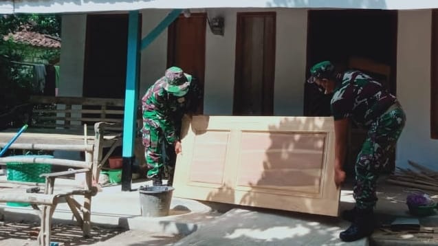 Sertu Kumedi anggota yang tergabung satgas TMMD mengatakan pemasangan daun pintu sengaja dipasang hari ini karena kemaren telah dilaksanakan pengecatan rumah.