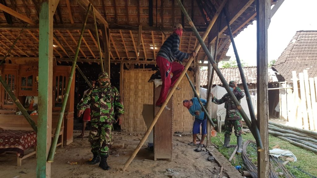 Pati- Pembangunan Rehab Rumah Tidak Layak Huni (RTLH) yang menjadi Program sasaran fisik pada TMMD reguler ke-111 Ta.2021 Kodim 0718/Pati, kini sudah mulai diperbaiki oleh beberapa prajurit Kodim dan warga yang terlihat gotong royong membangun rumah RTLH milik Supawi (55) di Dukuh Kemiri Rt 04/01 Desa Tamansari Kecamatan Jaken.