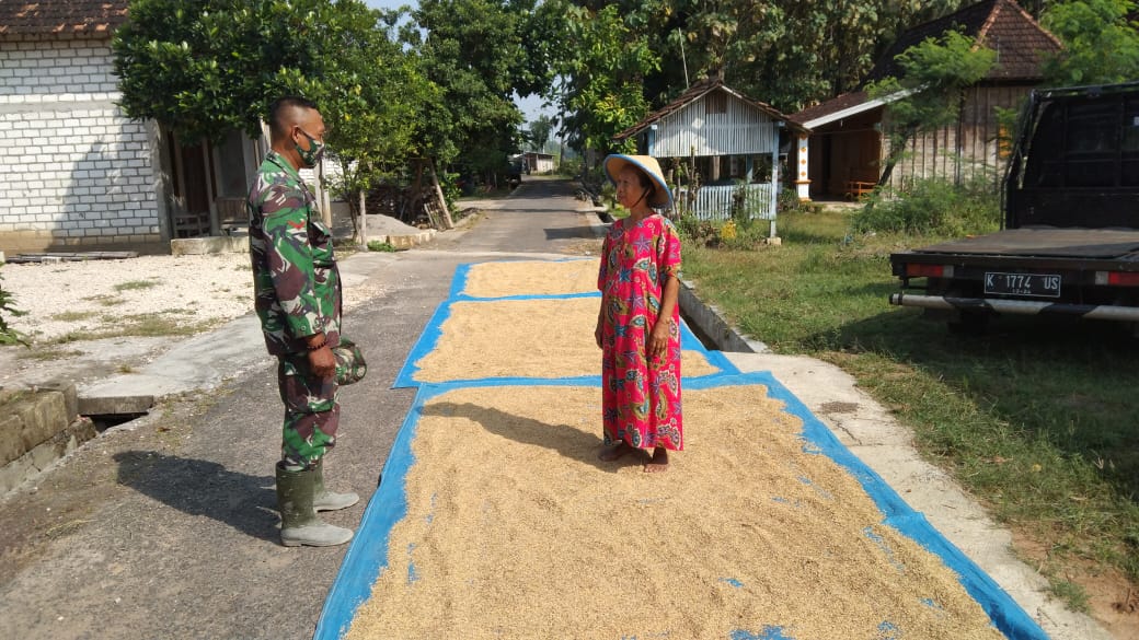Warsini (53) saat sedang berbincang bincang dengan Serda Rahmat Sujarwo datang menghampiri, kemudian saling menyapa dan bercanda tiba tiba Warsini berkata Pak, sudah punya istri belum. Kalau belum saya ambil mantu mau nggak, atau carikan teman bapak yang masih bujang. Saya pingin punya mantu TNI, karena TNI selalu membantu rakyat. Minggu (13/06/2021).