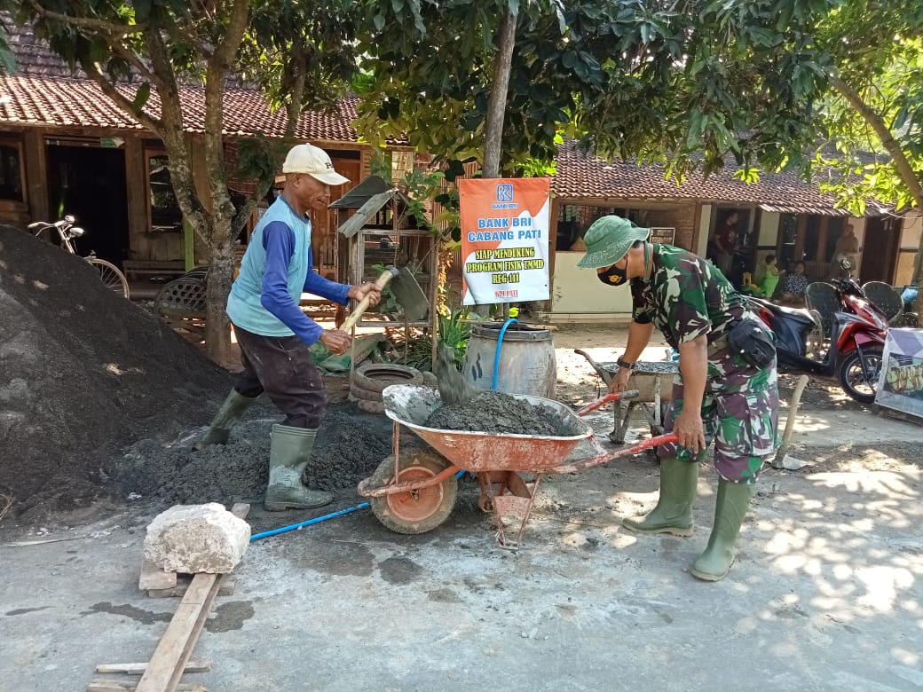 PATI -Program TNI Manunggal Membangun Desa (TMMD) Reg- 111 Kodim 0718/Pati Tahun Anggaran 2021 di Desa Tamansari, Kecamatan Jaken, Kabupaten Pati sekarang ini masih berlangsung. Beberapa sasaran fisik terus dikerjakan untuk mengejar waktu terbatas, diantaranya rehab Rumah Tidak Layak Huni (RTLH).