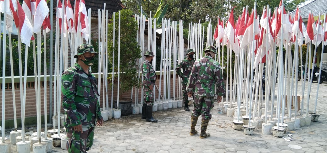 Terlihat puluhan tiang bendera dengan rata-rata ketinggian 2,5 meter sudah disiapkan dihalaman balai desa Tamaansari. “Kami sudah siapkan bendera merah putih yang akan kita pasang sepanjang jalan desa Tamansari agar lebih terlihat makin bagus dan semarak,”ucap Pelda Mardiyono anggota Satgas.
