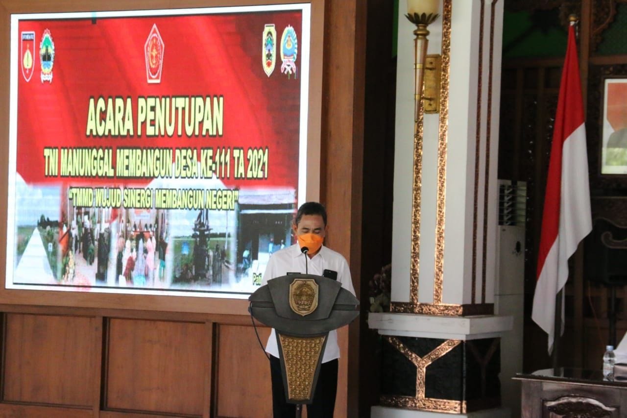 Pati – Trimakasih atas suksesnya pelaksanaan TMMD di Desa Tamansari ini, karena dengan adanya TMMD di desa ini, warga akan lebih maju dalam peningkatan ekonomi. Tentu kita harus bersyukur dan selalu ingat kepada Tuhan Yang Maha Esa, terang Bupati Pati, H Haryanto SH, MM, MSI dalam sambutannya, Kamis (25/07/21).