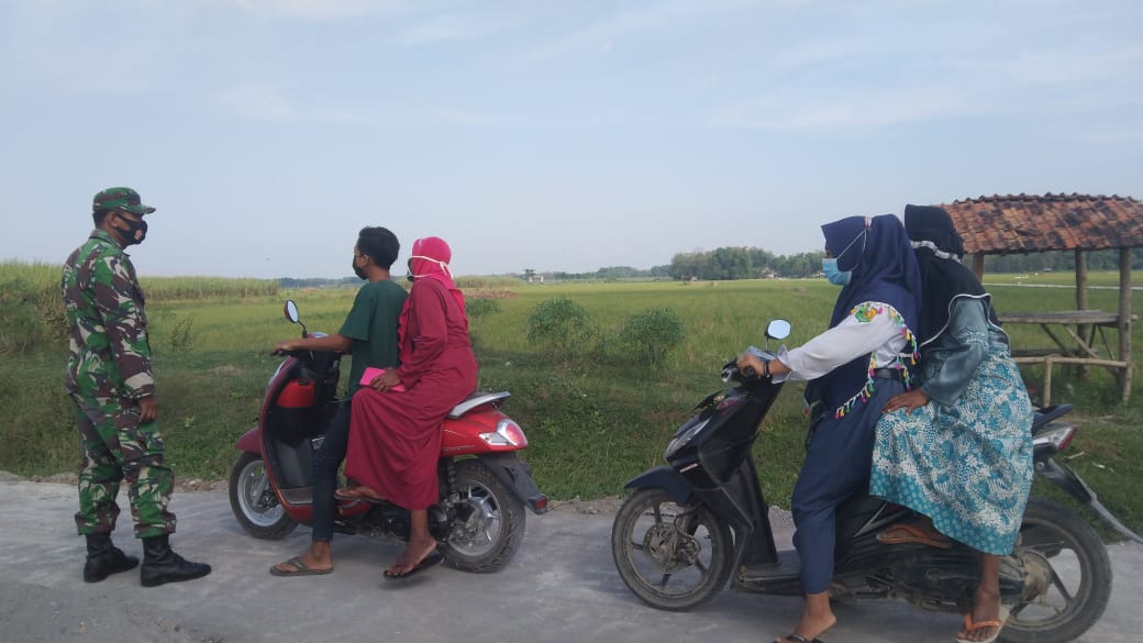 Seperti yang di lakukan Serda Anjas Anggota Personil Koramil 16/ Jaken Kodim 0718/ Pati. yang sedang melaksanakan peninjauan lokasi pengecoran paska penutupan empat hari yang lalu ,Dengan senyuman Ramah Menegur Ibu Sulasih yang lagi melintas di jalan penghubung diarea persawahan. Minggu (18/07/21).