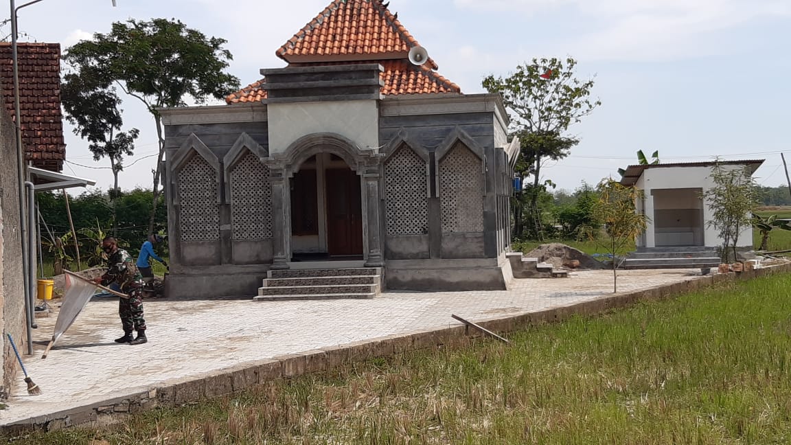 Pati – Warga Masyarakat desa yang antusias membantu anggota Satgas TNI Manunggal Membangun Desa (TMMD) Reguler Ke-111 Kodim 0718/Pati melakukan pengerjaan sasaran fisik rehab musholla Desa Tamansari, rehab tempat wudhu dan pemasangan Paving blok halaman musholla “Nurul Iman” yang kini telah mencapai 100 % di Dusun Pandahan, Desa Tamansari, Kecamatan Jaken, Kabupaten Pati, Selasa (13/7/2021).