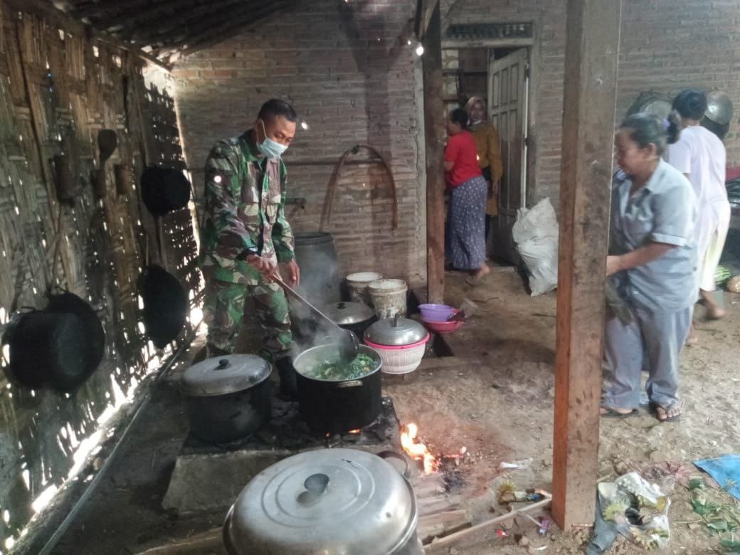 PATI — Anggota Satgas TMMD pun tidak canggung, seperti yang di lakukan Serda Al Muslim, ia ikut membantu Ibu Minah, tuan rumah yang di tinggali, memasak sayur, menggoreng lauk untuk makan malam, suasana keakraban pun nampak jelas, seperti keluarga sendiri.