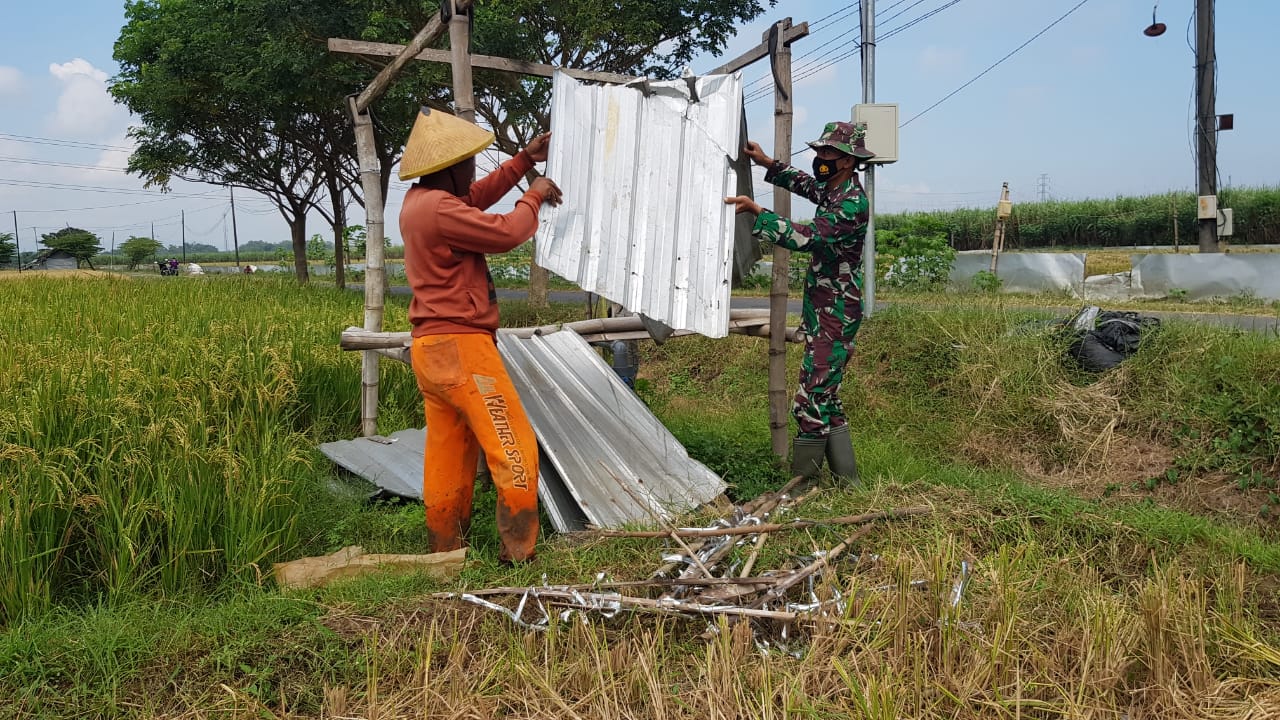 Sementara itu Serda Sukarji anggota satgas TMMD 111 Kodim Pati menjelaskan tadi malam memang hujan disertai angin, sehingga banyak juga gubuk yang berada disawah banyak yang rusak. Begitu juga seperti gubuk milik Margo yang didapatinya dipagi hari rusak terkena angin kencang.