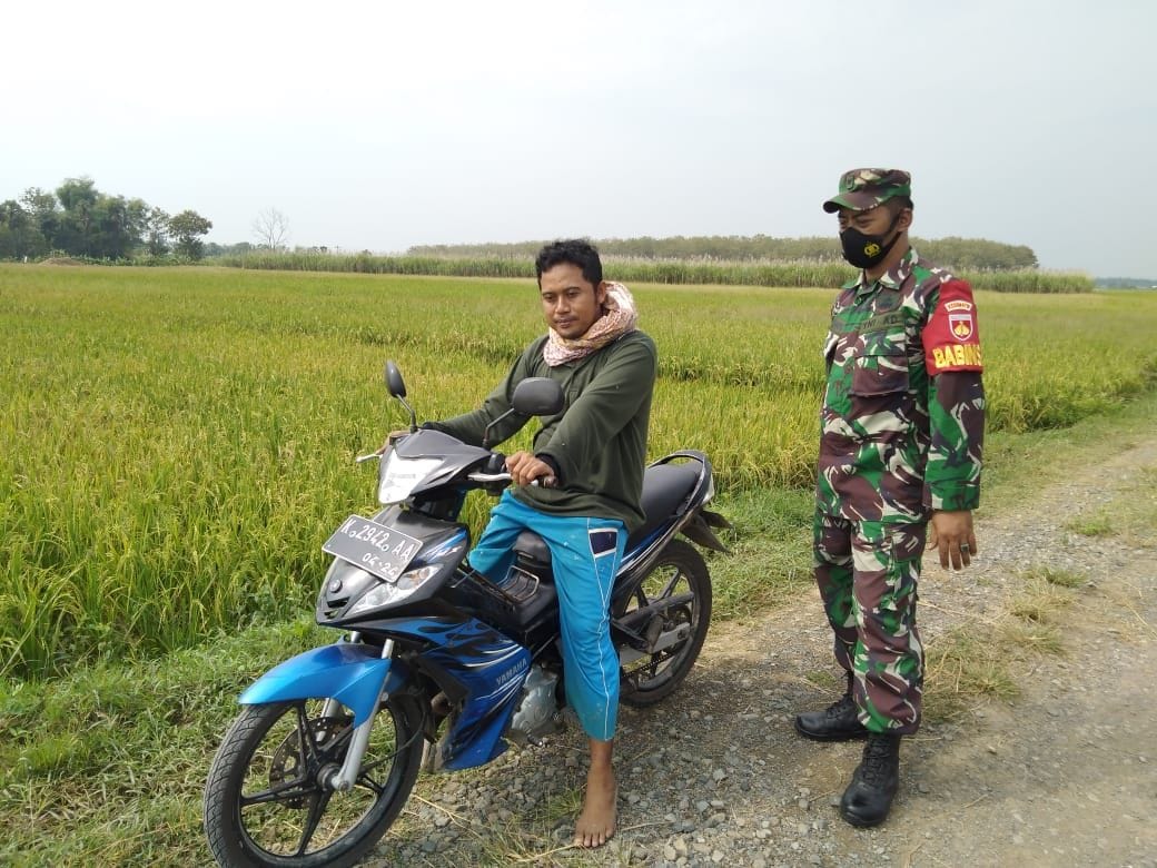 Pati – Salah satu anggota satgas TMMD Kodim 0718/Pati berdialog dengan warga sebelum pelaksanaan TMMD reguler ke 111 tahun 2021.