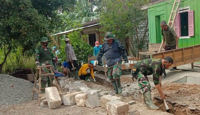 Rumah Tidak Layak Huni (RTLH) milik Mudadi (66) warga Dusun Pandahan, RT.01 RW.02 sudah mulai dikerjakan anggota Satgas TMMD dibantu warga setempat menggali untuk pemasangan pondasi rumah.