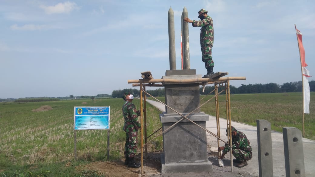 Pati – Pembangunan Tugu Prasasti TMMD Kodim 0718/ Pati di jalan penghubung antar desa yakni Desa Tamansari, menuju Desa Sumberarum Kecamatan Jaken, Kabupaten Pati sudah memasuki tahap finishing Prasasti TMMD Reguler ke-111 Kodim 0718/ Pati tersebut merupakan simbol manunggalnya rakyat bersama TNI, kemanunggalan Satgas TMMD bersama seluruh warga masyarakat Desa Tamansari.