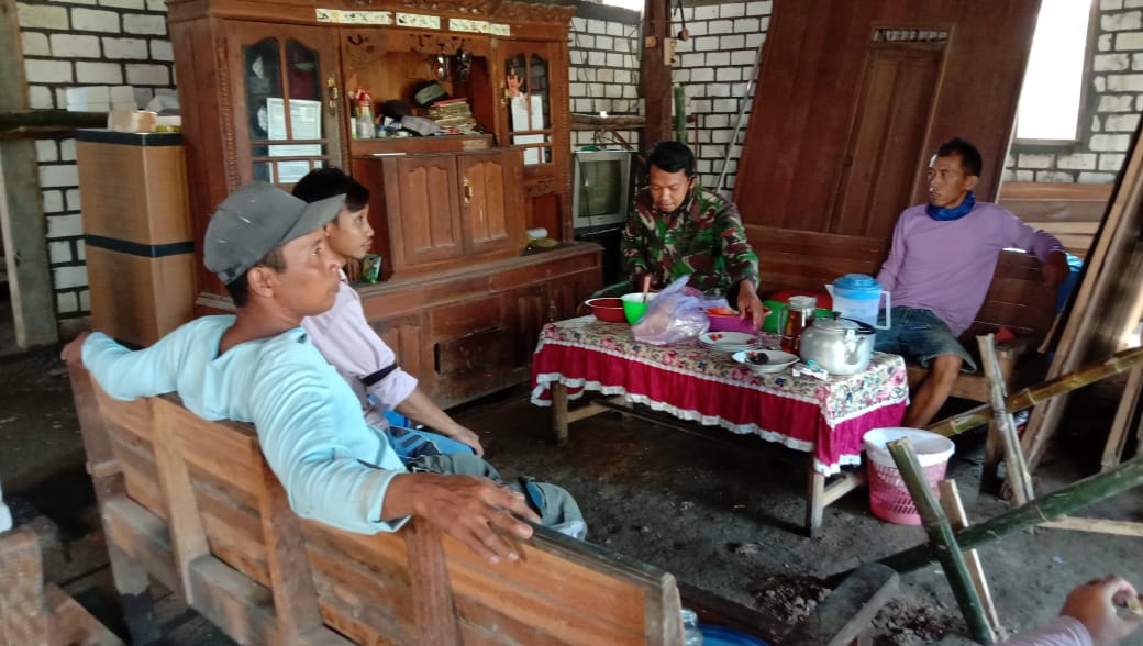 Tak terkecuali bagi Anggota Satgas TMMD Reguler Ke-111 Kodim 0718/Pati, Sertu Sumarno dan Kopda Bowo. Keduanya terlihat asyik berbincang bersama masyarakat yang tergabung dalam program rehab Rumah Tidak Layak Huni (RTLH) milik Sapari (60) warga Dusun Pandahan, Kecamatan Jaken, sambil makan buah pisang hidangan jaminan.