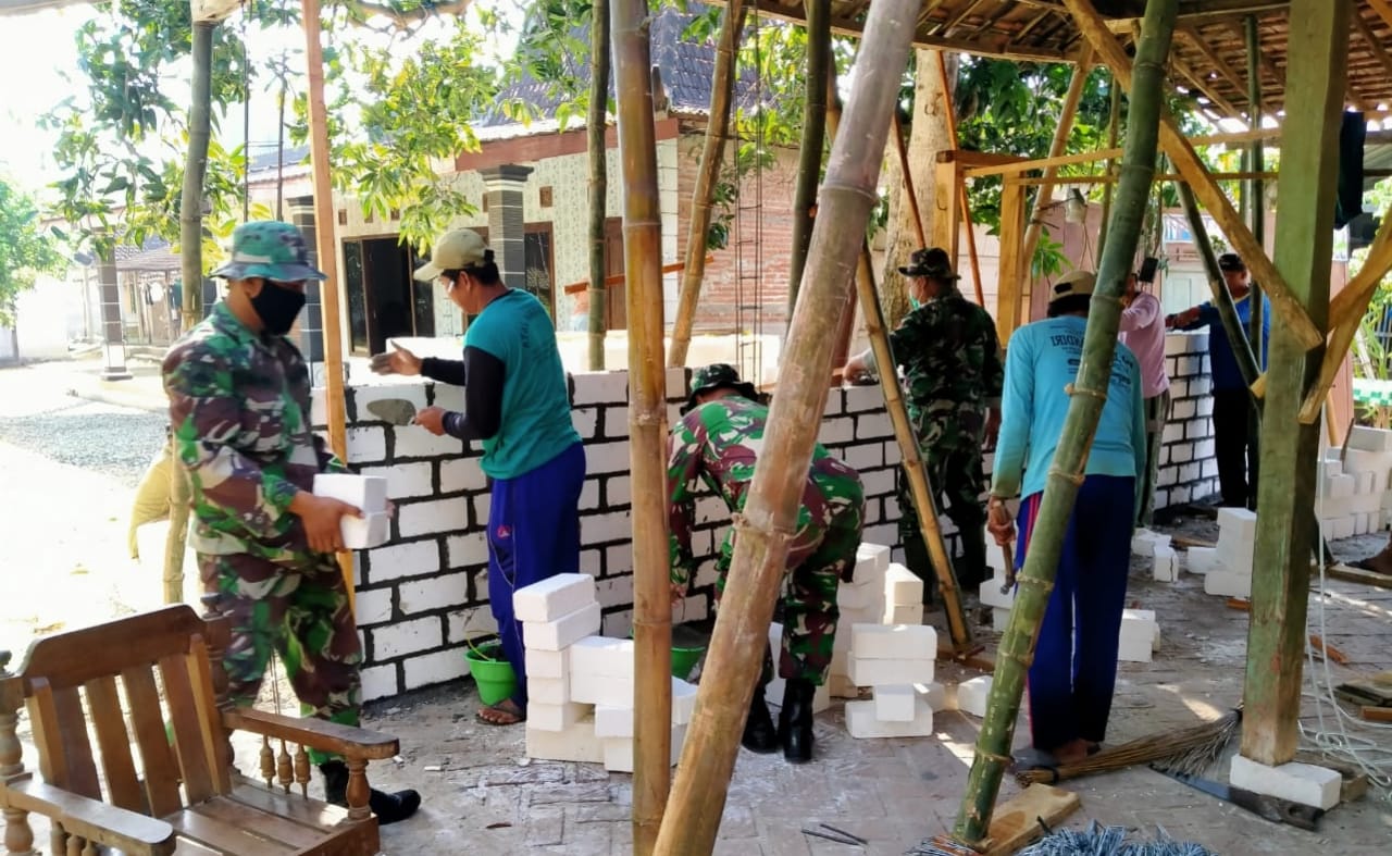 Pati-Menjelang tiga hari sebelum pembukaan TMMD Reg. 111 Kodim Pati, Satgas TMMD bersama masyarakat tetap terus bekerja menyelesaikan di sasaran fisik TMMD termasuk di sasaran pokok dan sasaran tambahan rehab RTLH. Minggu,(13/06/2021).