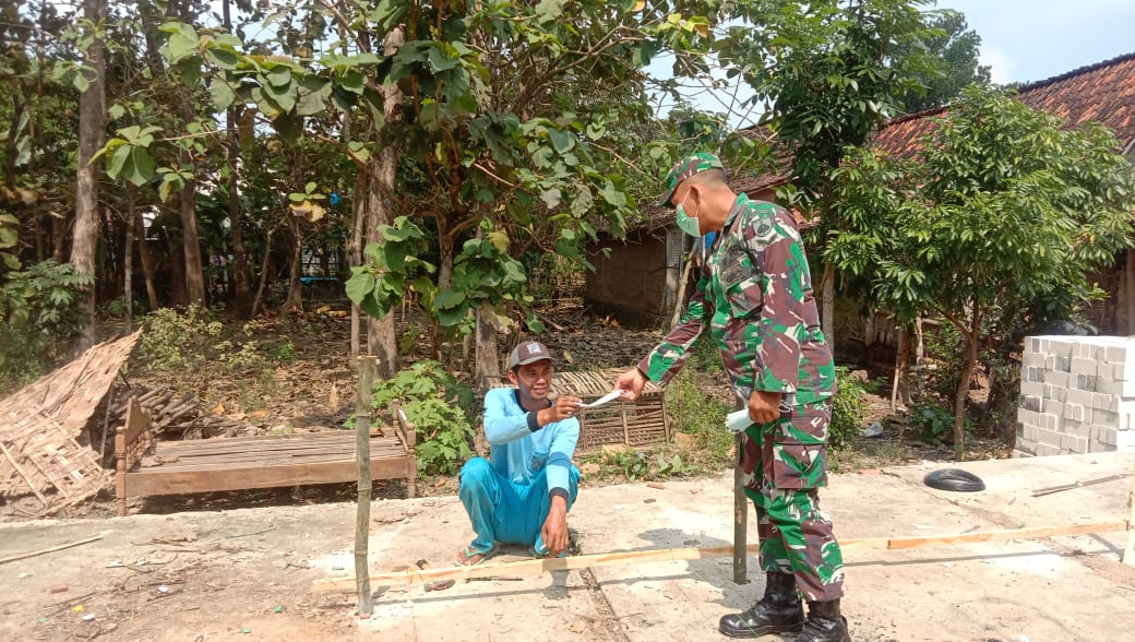 Pati – Kepedulian Satgas dengan warga tak diragukan lagi, Satgas yang selalu peduli dengan lingkungan dapat dilihat saat Satgas menghampiri Sarben (52) yang saat itu sedang menyiapkan keperluan bedah rumah. Nampak keakraban anggota Satgas TMMD Reguler ke-111 Kodim 0718/Pati. (06/06/2021).
