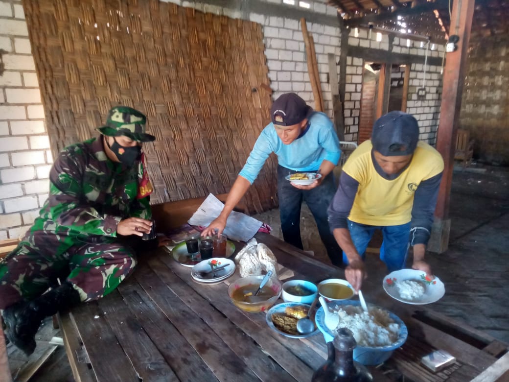 Ini merupakan potret kemanunggalan TNI bersama rakyat. “Sarapan dulu mengisi tenaga baru kita lanjut bekerja lagi,”kata serka Supeno,”.Kamis,(17/06/2021).