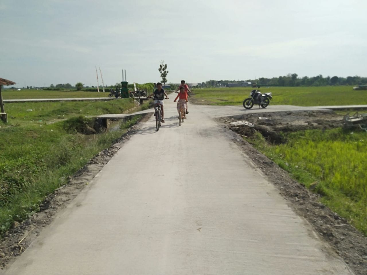 Pati – Anak-anak menikmati jalan yang sudah di cor, dengan mengunakan sepeda santai di Desa Tamansari terlihat begitu enjoy dan asyik.