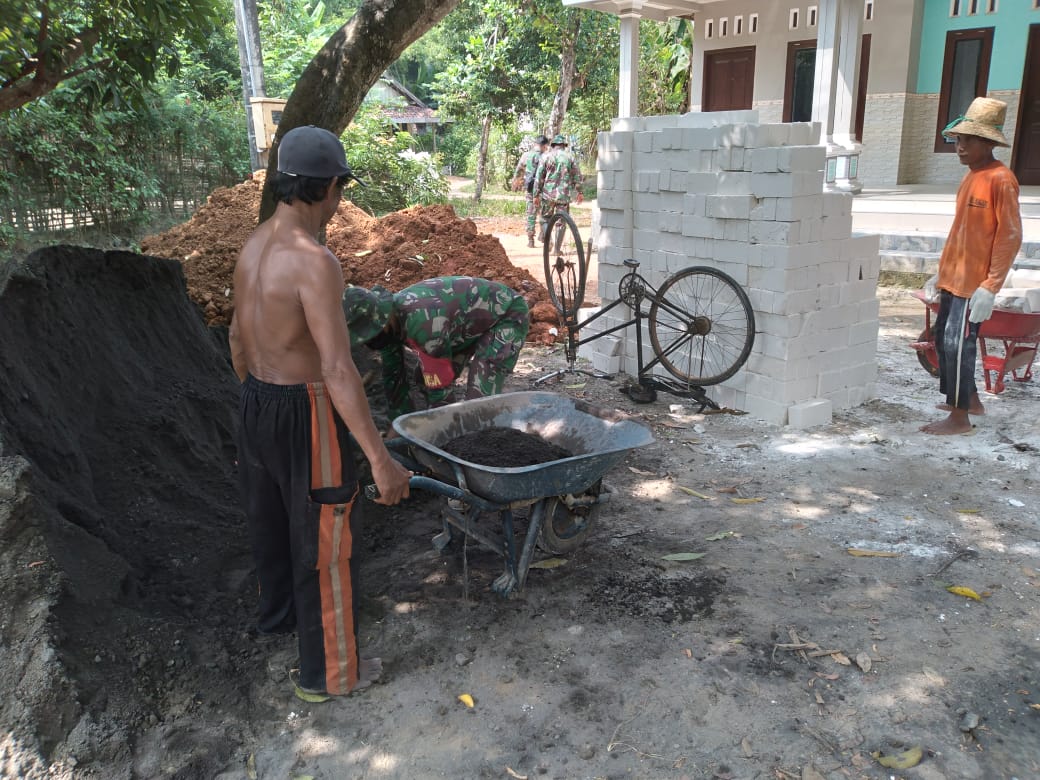 Di rumah Santoso(42),Kasmijan bekerja bersama dengan anggota TNI satgas Pra TMMD Ke 111 Kodim 0718/Pati, salah satu nya adalah Sertu Sumarno. Kasmijan dan sertu sumarno dan teman-teman pekerja lainnya saling bahu membahu menyelesaikan pekerjaannya, agar efektif tenaga dan efesiensi waktu, meraka saling membagi tugas dan tanggung jawab sehingga hasil kerjanya maksiimal.