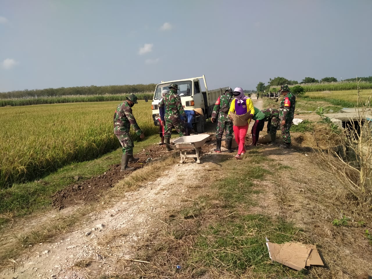 Pati- Pergi pagi pulang petang , itulah rutinitas kegiatan anggota TNI yang tergabung dalam satgas Pra TMMD Ke 111 Kodim 0718/Pati. Bersama- sama dengan warga bergotong-royong meratakan jalan persawahan yang masih berupa tanggul tanah.