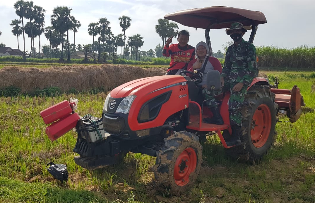 Serda Sukarji Merasakan Enaknya Naik Traktor Pembajak Sawah