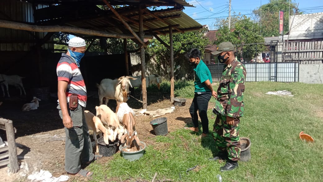 Pati-Sambil bekerja di program TMMD Reg.111 Kodim Pati di desa Tamansari kecamatan Jaken, salah satu anggota satgas juga menyempatkan diri untuk belajar menyerap ilmu beternak kambing milik warga.Rabu,(16/06/06/2021).