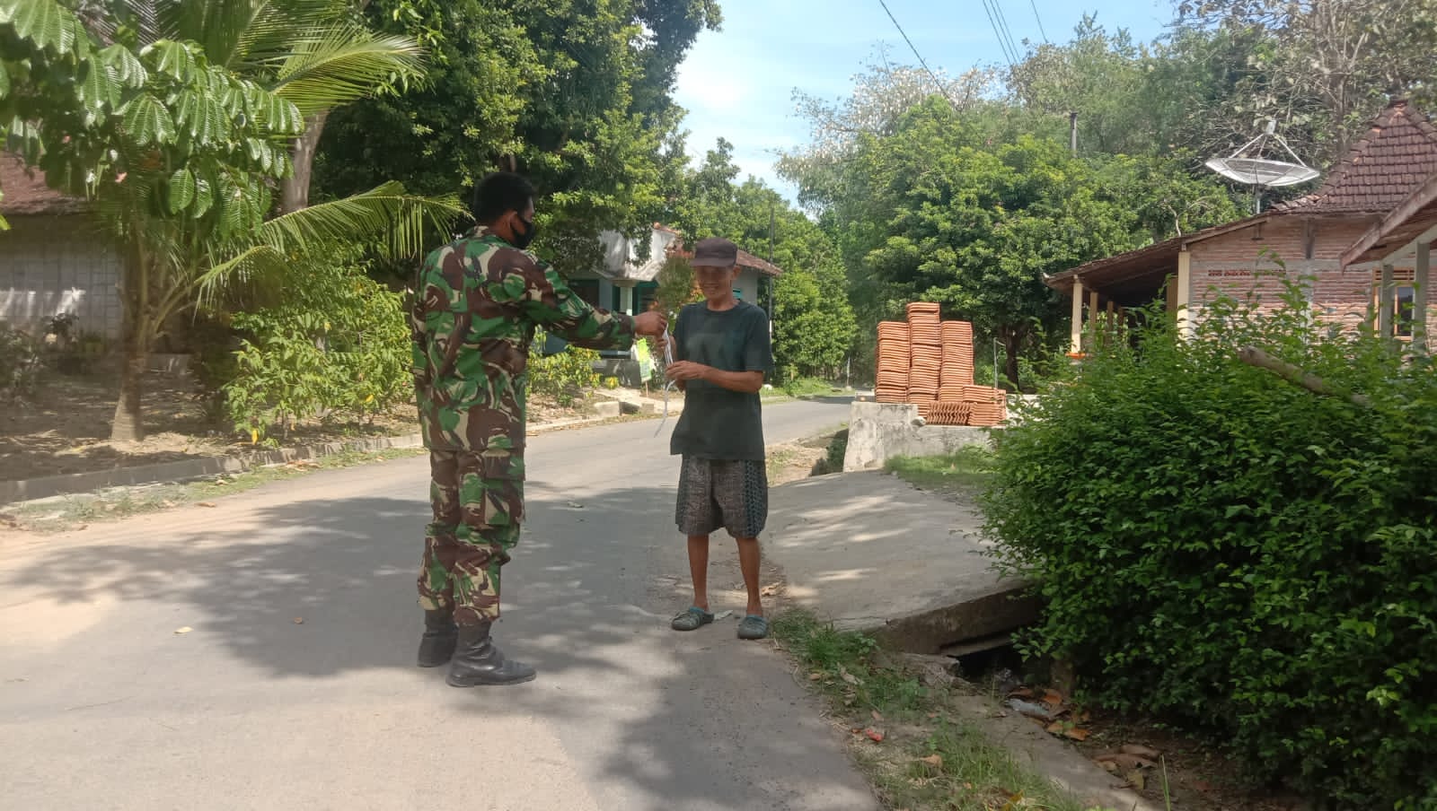Terlihat saat anggota memberikan masker kepada Mbah Tukijo (75). Mbah Tukijo, warga Dusun Kalimati, Desa Tamansari itu mengaku dirinya saat itu lupa tidak membawa masker saat hendak ke luar rumah mau ke warung. “Matur nuwun pak tentara, saya lupa bawa masker,mulai sekarang saya akan tertib memakai masker”,ucap Tukijo.