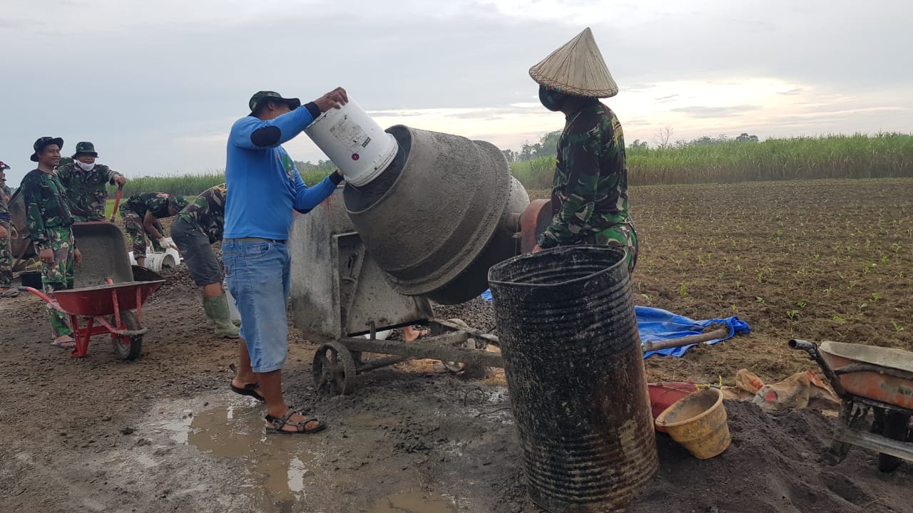 Pati- Silih berganti antara Satgas TMMD Reg.111 Kodim Pati bersama masyarakat dalam mengoperasionalkan mesin molen pengaduk adonan beton dilokasi betonisasi jalan. Kekompakan yang ditunjukkan oleh anggota satgas dan masyarakat menggambarkan kemanunggalan TNI bersama rakyat khususnya di desa Tamansari kecamatan Jaken sudah terjalin dengan baik.