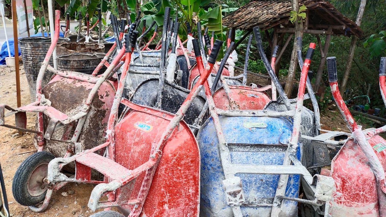 Kini alat tersebut terlihat dikumpulkan di depan balai desa Tamansari setelah digunakan untuk berjuang mewujudkan jalan desa yang diidamkan oleh masyarakat Tamansari sebagai akses penghubung antar desa Tamansari dengan desa Sumberarum di area persawahan.