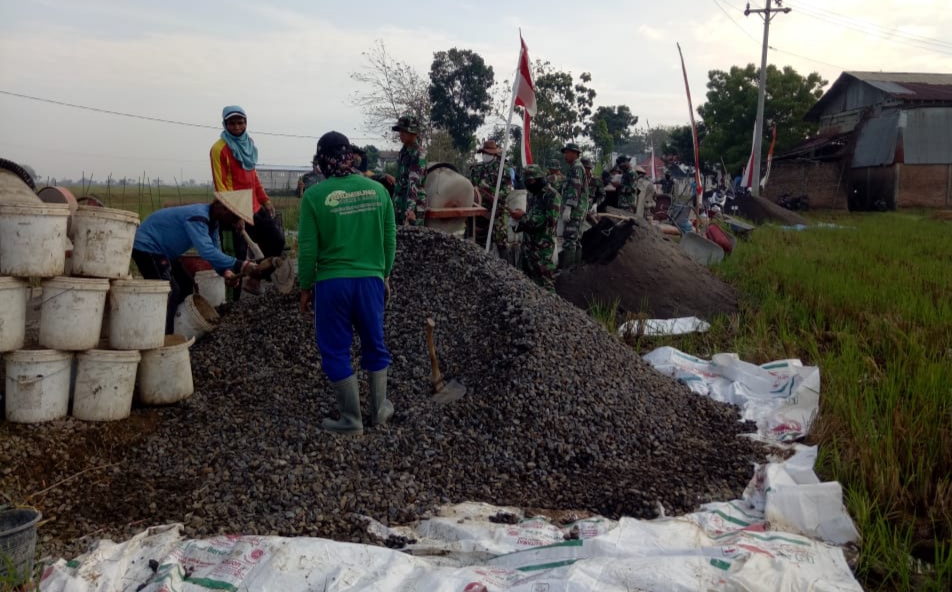 Pati – Pembangunan infrastruktur yang merupakan sasaran fisik TMMD Reguler Ke-111 Kodim/0718/Pati, diantaranya yaitu pengecoran jalan pertanian sepanjang 1.450 meter, lebar 2,6 meter dan tebal 17 centimeter dan renovasi 16 unit Rumah Tidak Layak Huni (RTLH) milik warga, terus dikebut pengerjaanya, Minggu (04/7/2021)
