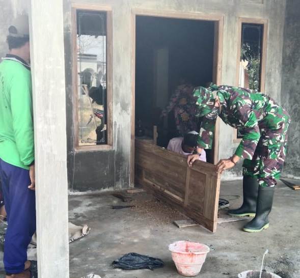 Pati- perehapan Rumah Tidak Layak Huni (RTLH) kali ini sudah memasuki tahap pemasangan pintu rumah milik Sutiah (48).