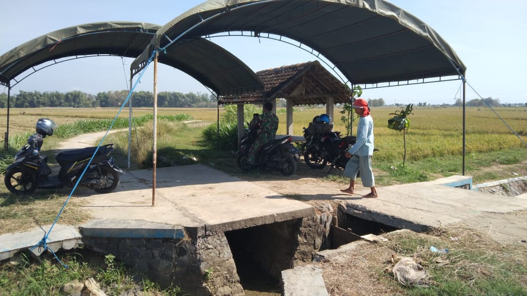 Pati –Satgas Pra TMMD dikerahkan untuk memasang tenda di Desa Tamansari, Kecamatan Jaken, Kabupaten Pati, untuk memasang tenda digunakan untuk sarana penunjang pengecoran jalan sepanjang 1.450 meter lebar 2,6 meter dengan ketebalan 17 Cm pada Pra TMMD Reguler ke-111 Kodim Kodim/Pati. sabtu (05/06/2021).