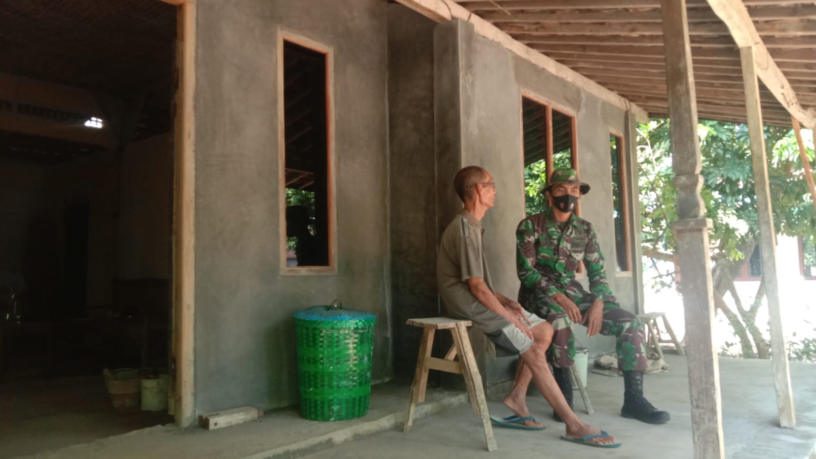 Serda Sutarji yang terlibat Satgas TMMD di Desa Tamansari, masih menyempatkan waktunya untuk bersilaturahim ke rumah Rusnawi (55) Warga Desa Tamansari yang pernah ikut membantu giat TMMD.