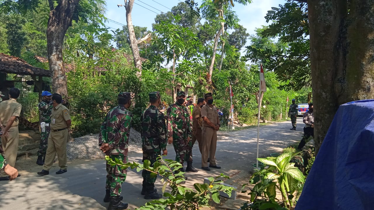 Teelihat ketua Tim Kolonel Bambang Guritno melihat-lihat kondisi rumah daribdepan.