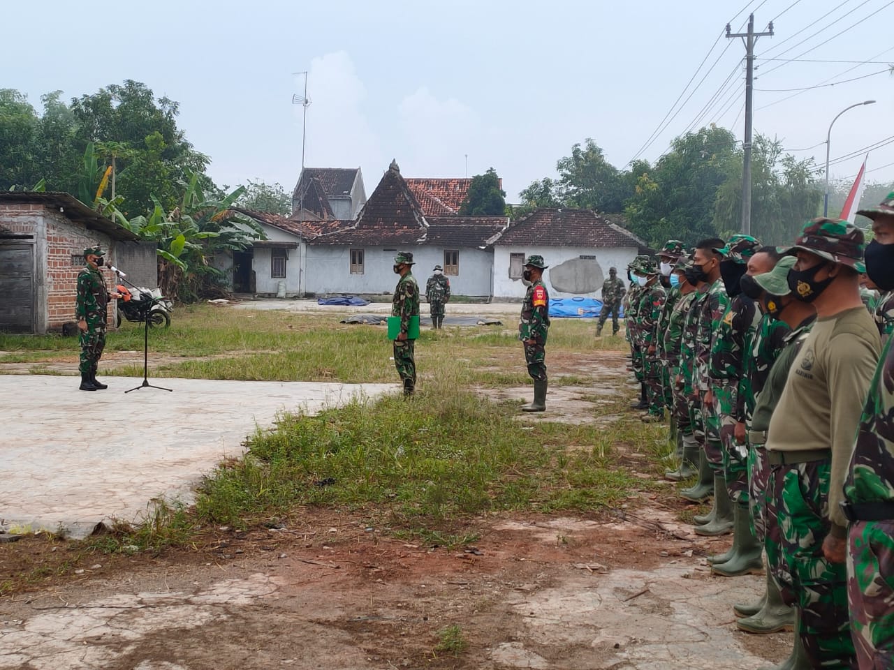 Pati – Pagi ini Satgas TMMD Reguler Ke-111 Kodim 0718/Pati berkumpul di halaman penggilingan padi Desa Tamansari yang dijadikan sebagai tempat berlangsungnya apel pagi. Pada hari ini Dandim 0718/Pati Letkol Czi Adi Ilham Zamani SE,M.I.Pol selaku Dansatgas TMMD sebagai pengambil apel. Senin (21/06/2021)