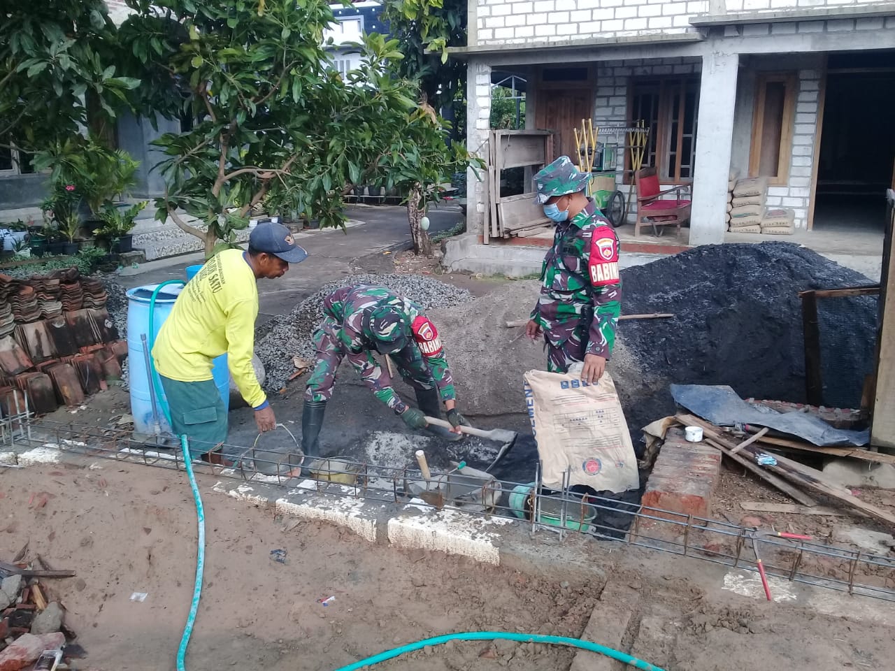 Di kegiatan rehab RTLH itu, TNI dan rakyat begitu dekat, terlihat pengerjaan yang dimulai sejak pagi,TNI dan warga berjibaku mengaduk pasir,semen dan air untuk material pengisian cor pondasi.