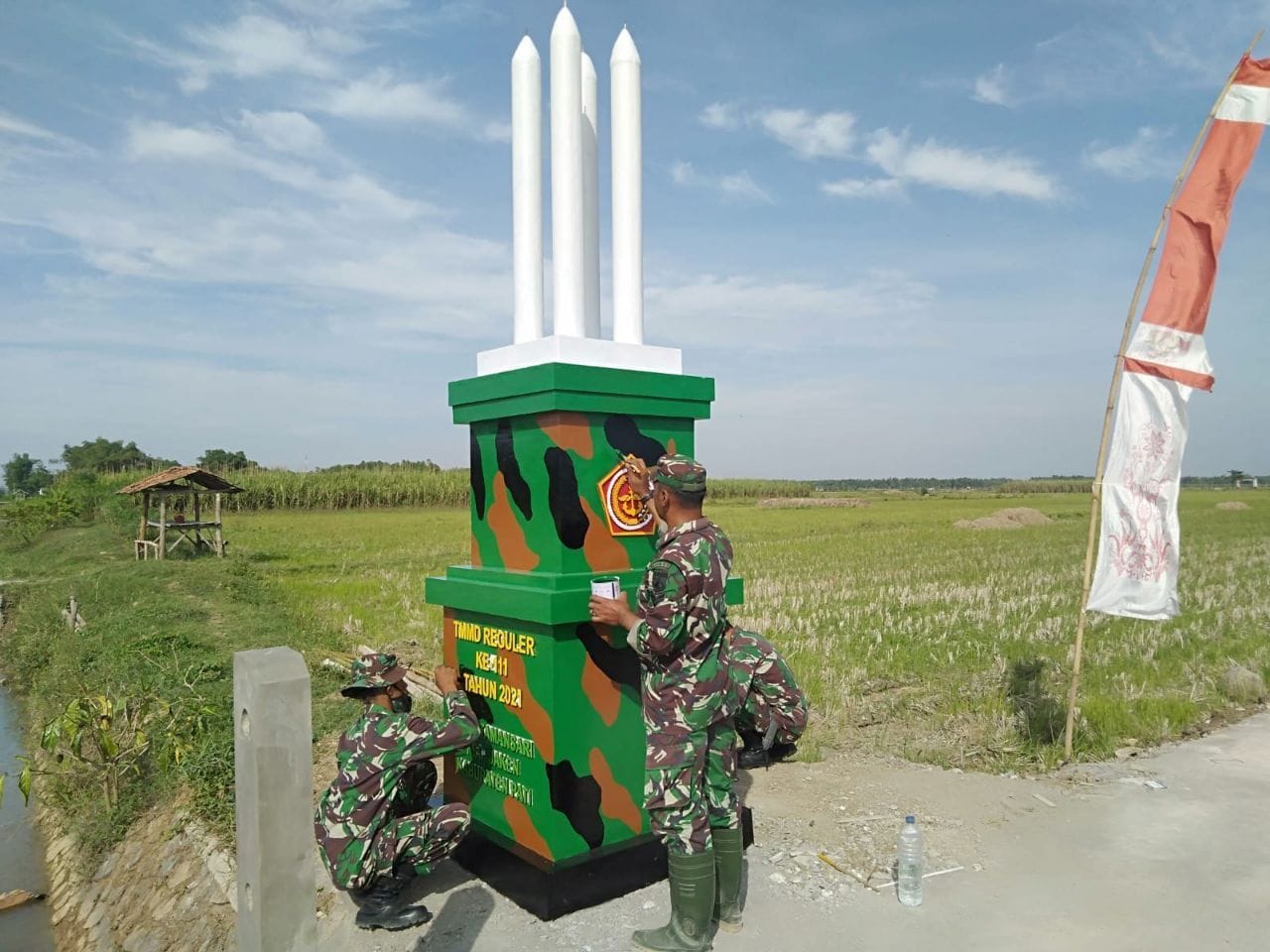 Terlihat, tugu peringatan Satgas TMMD Reguler ke 111 telah selesai, melaksanakan pengecatan tugu dengan warna hijau khas uniform TNI-AD.